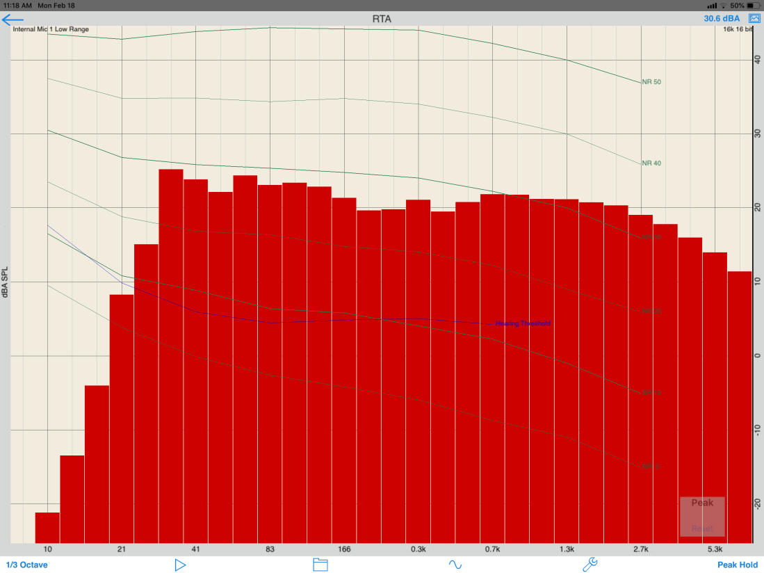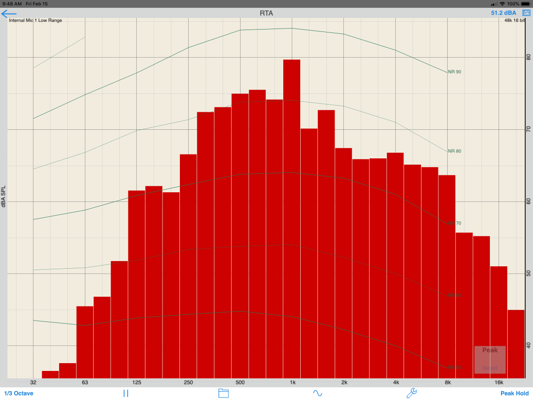 Studio Noise AC on – 37.2 SPL (need to address AC condenser noise through ceiling)